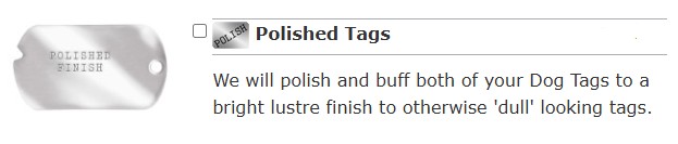 At MyDogtag.com, we provide premium quality Personalized Military Dog Tags for sale that will last a lifetime. They are completely customizable so you can easily order G.I. replica Dog Tags as per military specs, or use your own design for any other use or occasion. The tag starts as a blank canvas, what you put on it is entirely your choice... you aren't obligated to put official Military Dog Tag info on it. You also get to see a preview of what your finished Dog Tag set will look like before you even order it! We can even laser engrave your custom logo or image!